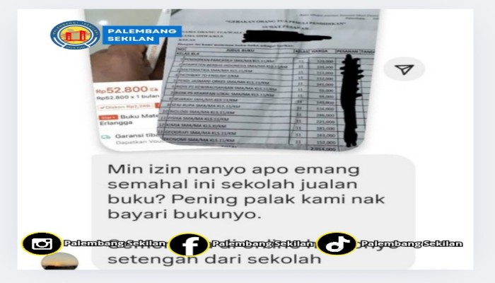 PALEMBANG, Palembangsekilan.com— Keluhan orang tua siswa soal mahalnya harga buku sekolah kembali mencuat dan menjadi sorotan publik. Dalam unggahan akun Instagram @palembang.terciduk_xx, beredar foto surat pesanan buku dari sebuah sekolah yang diketahui merupakan Madrasah Tsanawiyah (MTs) Negeri di Kota Palembang, dengan total harga buku mencapai Rp 2.014.000 untuk satu tahun ajaran.