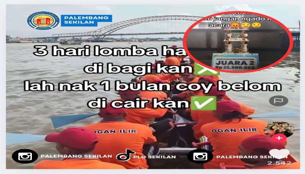 “3 hari lomba hadiah nyo di bagi kan ❌, lah nak 1 bulan coy belom di cair kan ✅.” Unggahan lainnya bahkan menampilkan piala Juara 2 dengan hadiah Rp22,5 juta, disertai sindiran pedas: “Kemane anggaran e??? Thn depan men sekironyo buntu jangan ngado kan acara 😡.” Rabu (17/9/2025)