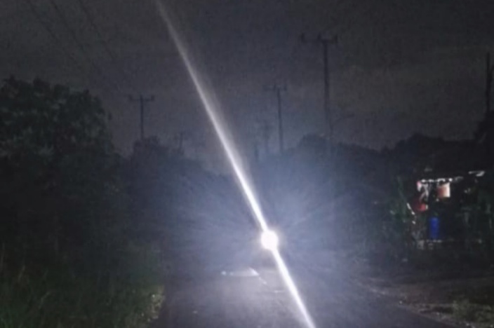 Pantauan di lapangan memperlihatkan deretan tiang PJU berdiri tanpa cahaya, hanya satu lampu yang berfungsi dengan redup. Selebihnya, gelap total. Warga yang melintas terpaksa mengandalkan penerangan dari kendaraan masing-masing.