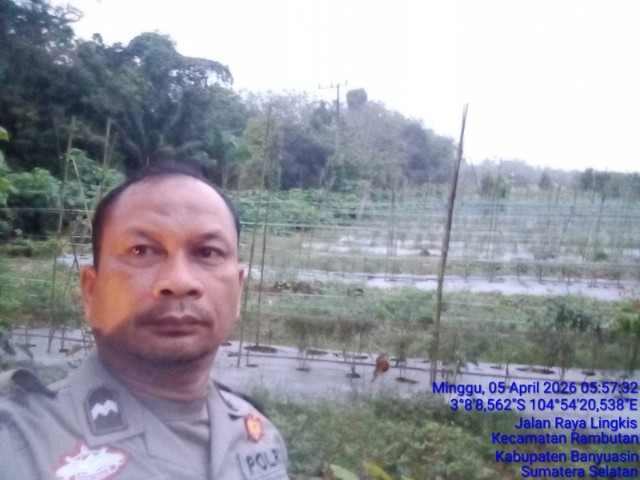 Banyuasin –Dalam upaya mendukung program pemerintah mewujudkan ketahanan pangan nasional, seorang Bhabinkamtibmas Polsek Rambutan, Aipda Arifin Ahmad SH, terlihat aktif melaksanakan kegiatan perawatan tanaman cabai di lahan pekarangan warga. Kegiatan ini berlangsung pada Minggu (5/4/2026) siang, di Desa Tanah Lembak, Kecamatan Rambutan, Kabupaten Banyuasin.